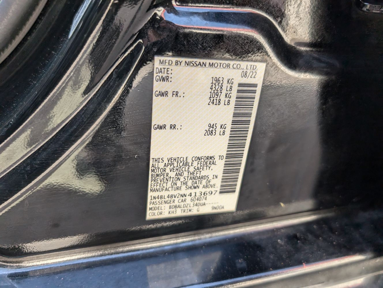 VIN: 1N4BL4BV2NN413697